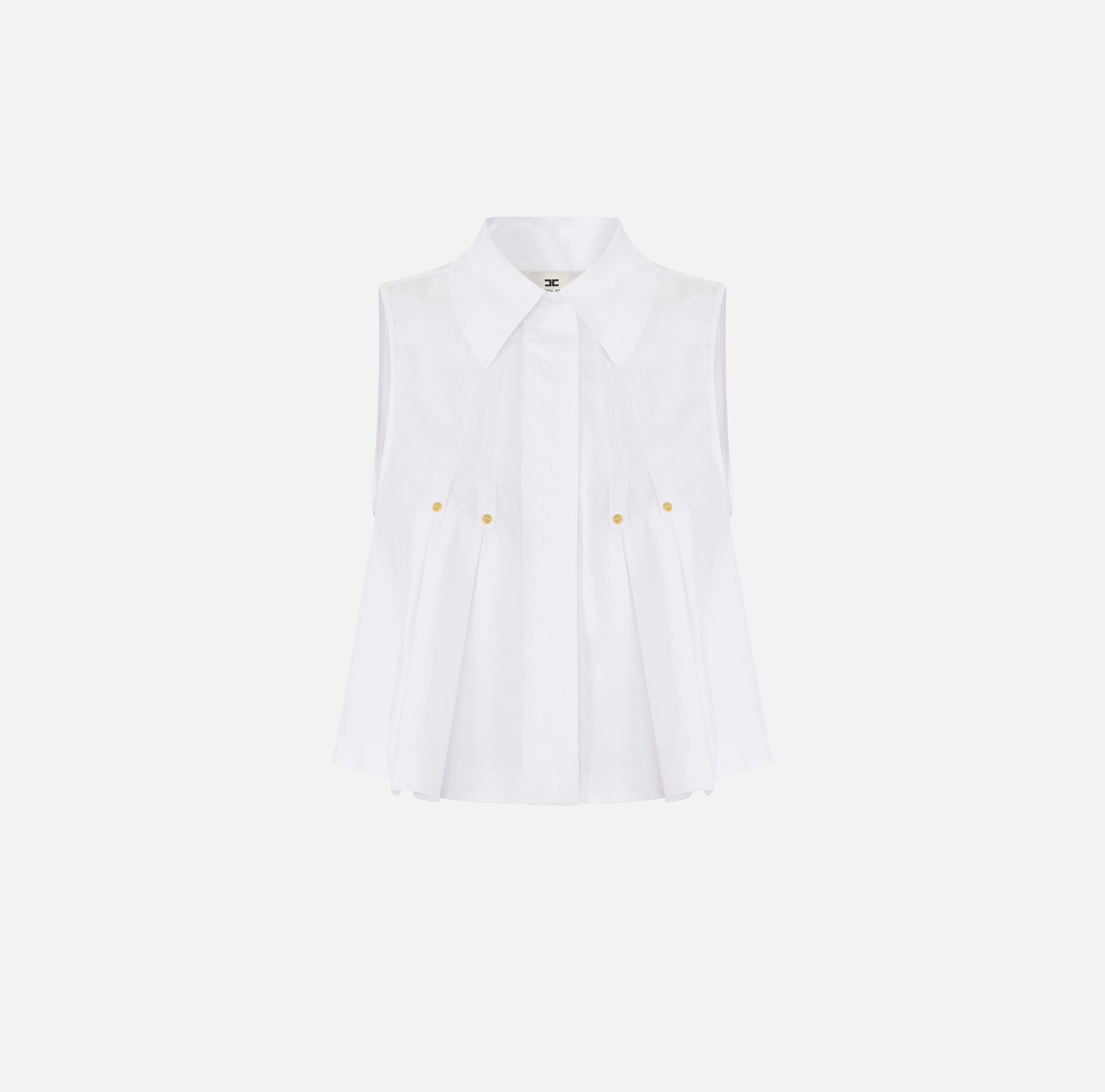 Koszula bez rękawów, z bawełnianej popeliny, ze stójką. Wyróżnia się zakładkami z przodu, ozdobionymi metalowymi nitami w kolorze złotym. Tył jest ozdobiony zapinanym na guziki paskiem z logo. Prosty krój.