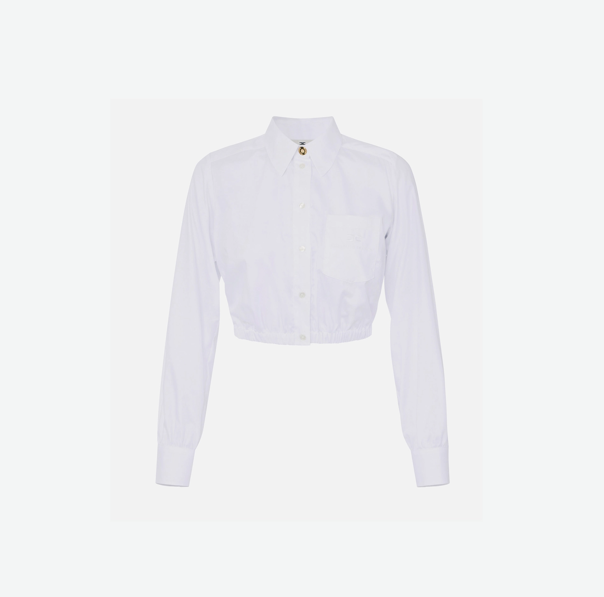 Koszula z popeliny z bawełny, z długimi rękawami, o kroju pudełkowym, z gumką w talii. Charakteryzuje się kieszonką z wyszywanym logo. Metalowe złote guziki z logo zdobią kołnierz i mankiety. Prosty krój.