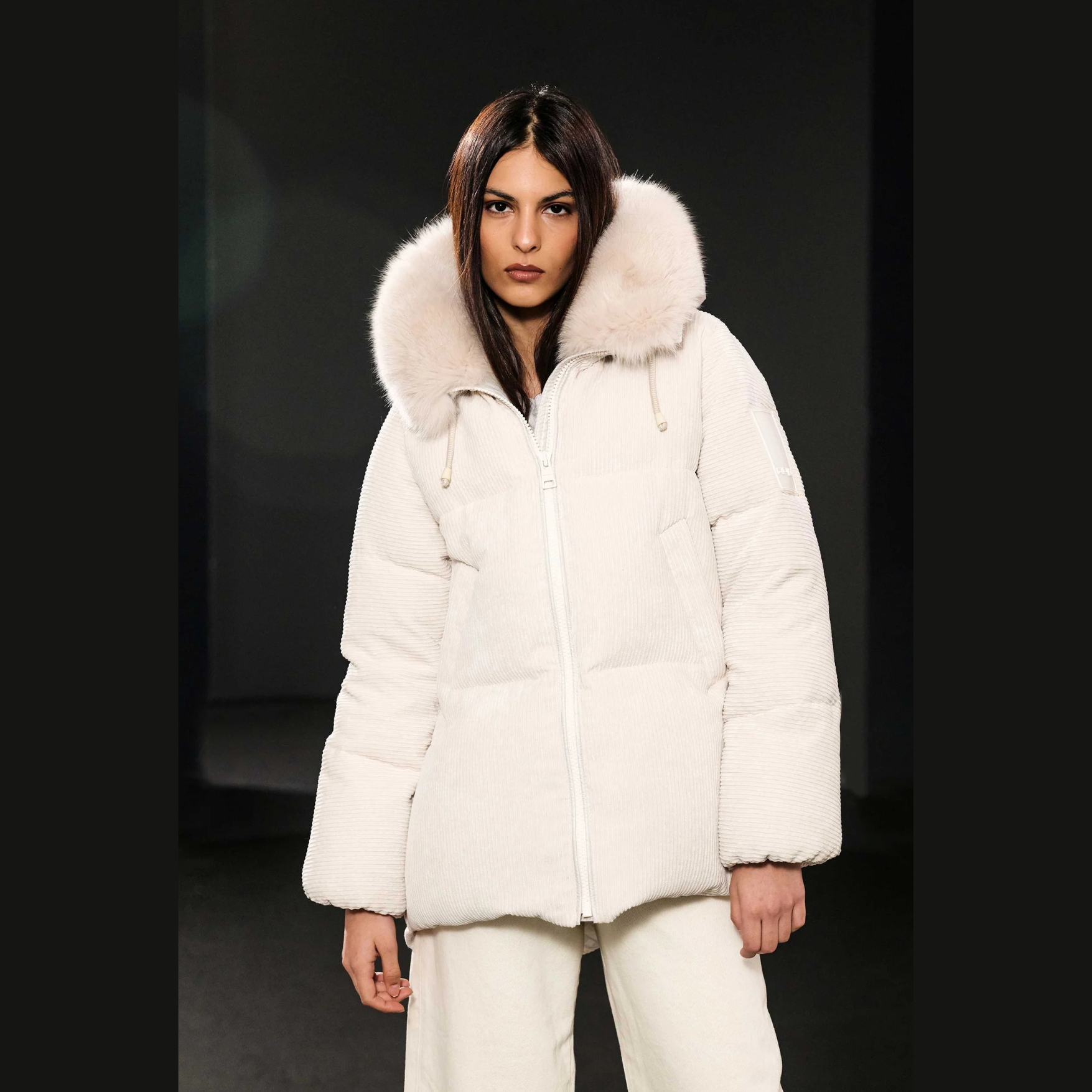 Dłuższa kremowa welurowa kurtka puchowa Flo Clo Italia