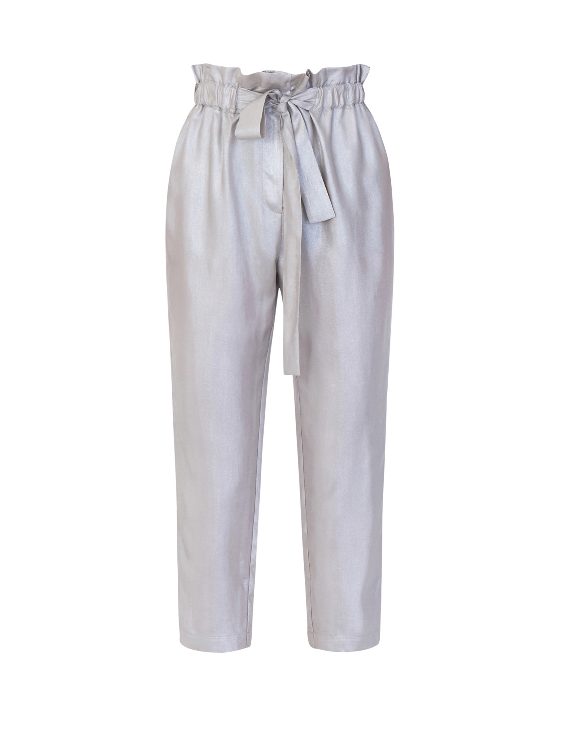 Wybór dla odważnym i ceniących sobie oryginalność kobiet. Spodnie dodadzą blasku każdej stylizacji. Ozdobna góra oraz wywiązywany pasek dopełnia całość.