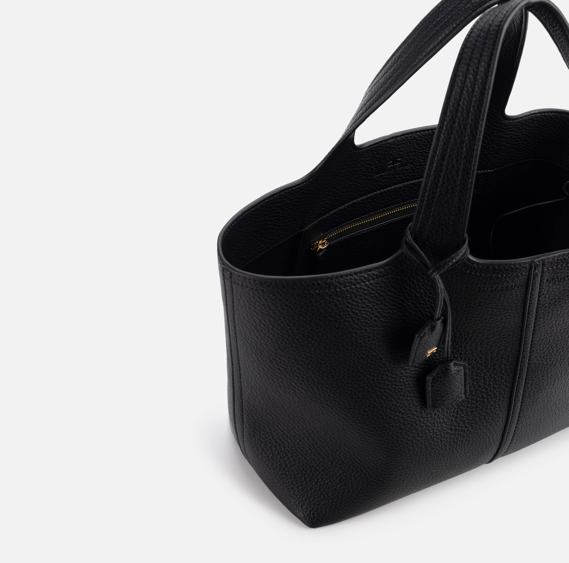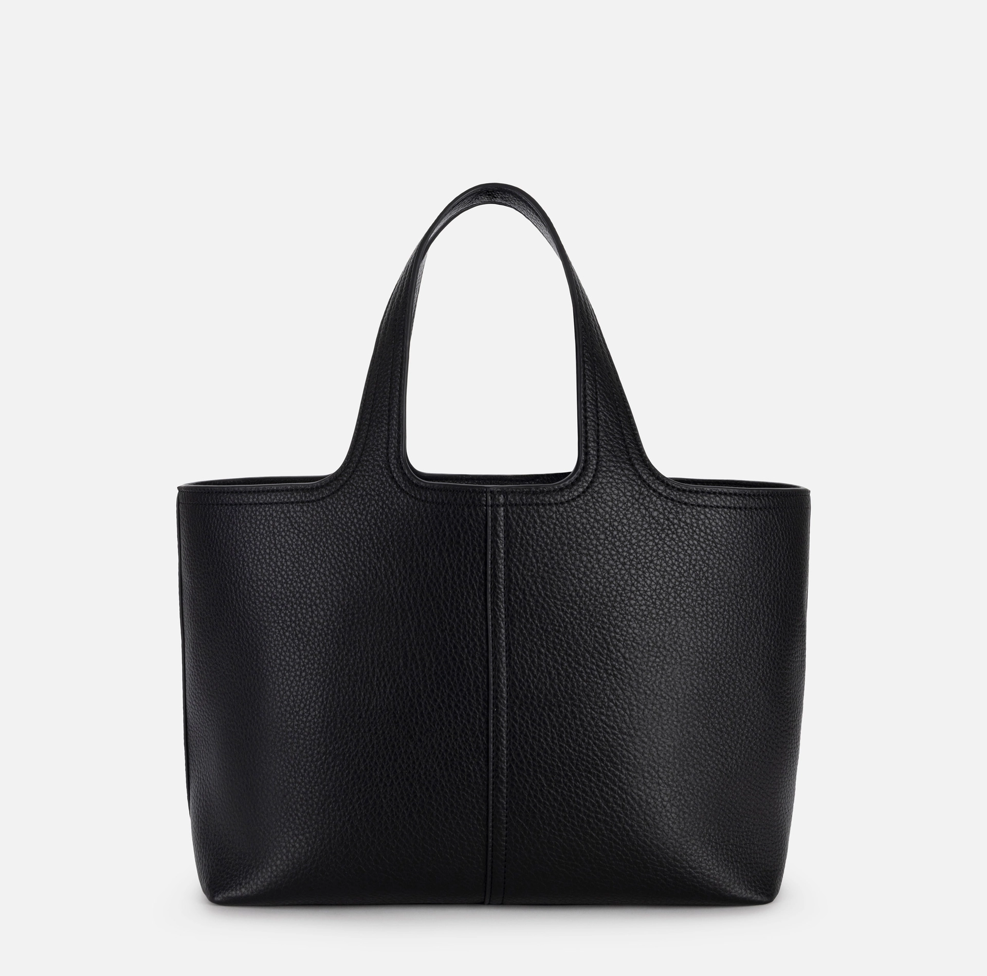 Średnia torba typu tote wykonana z wysokogatunkowej skóry ekologicznej. Uchwyt zdobi akcesorium inspirowane klasycznymi bagażami, ozdobione detalami z logo marki.