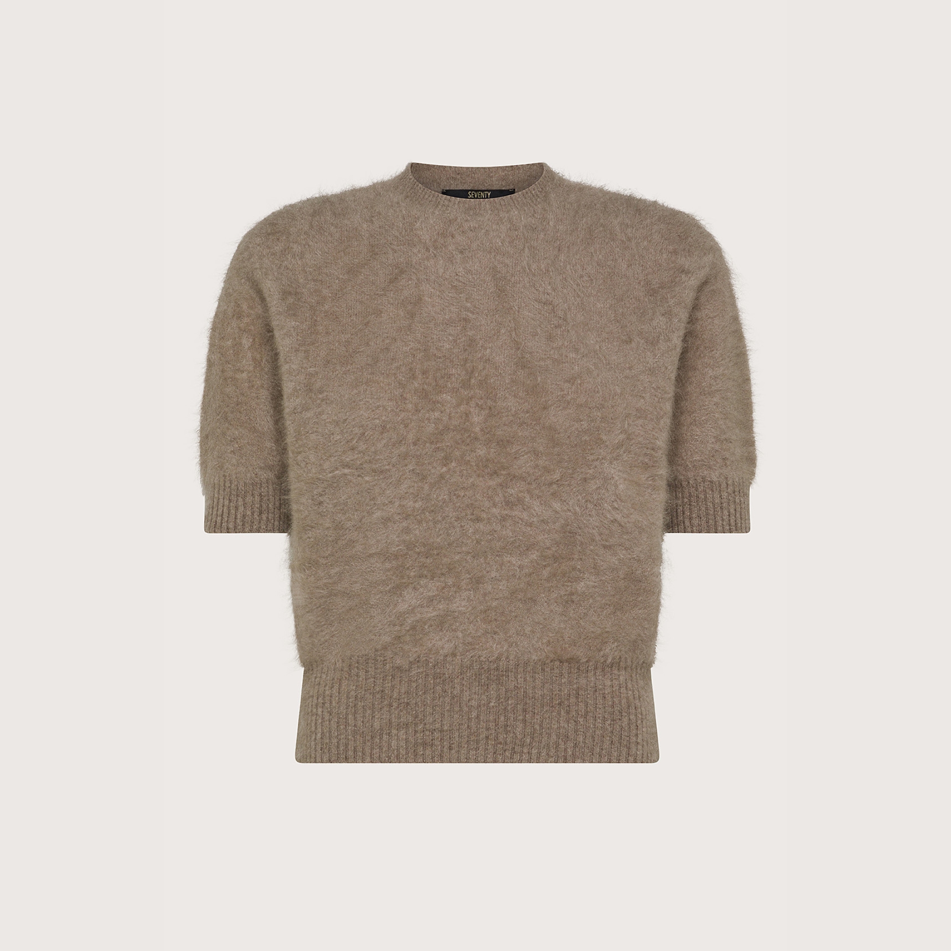 Ten sweter damski z kaszmiru Seventy to połączenie elegancji, komfortu i nowoczesnego stylu. Wykonany z miękkiej, puszystej dzianiny kaszmirowej, zapewnia nie tylko wyjątkowe ciepło, ale i lekkość. Model o luźniejszym kroju z krótkim rękawem jest idealny na sezon przejściowy i świetnie komponuje się zarówno z eleganckimi spodniami, jak i jeansami.